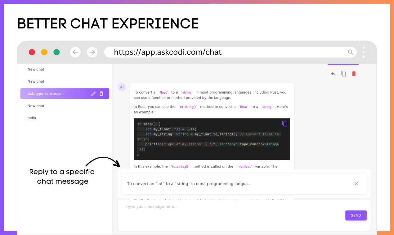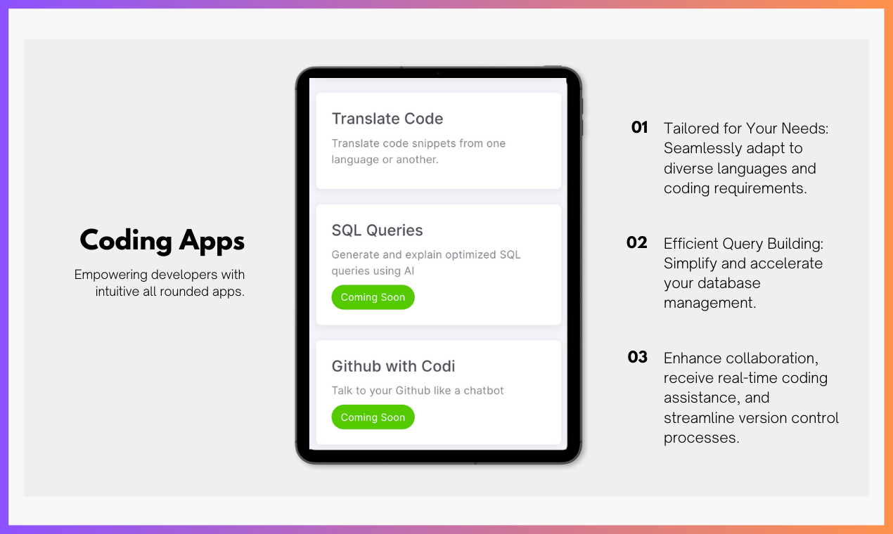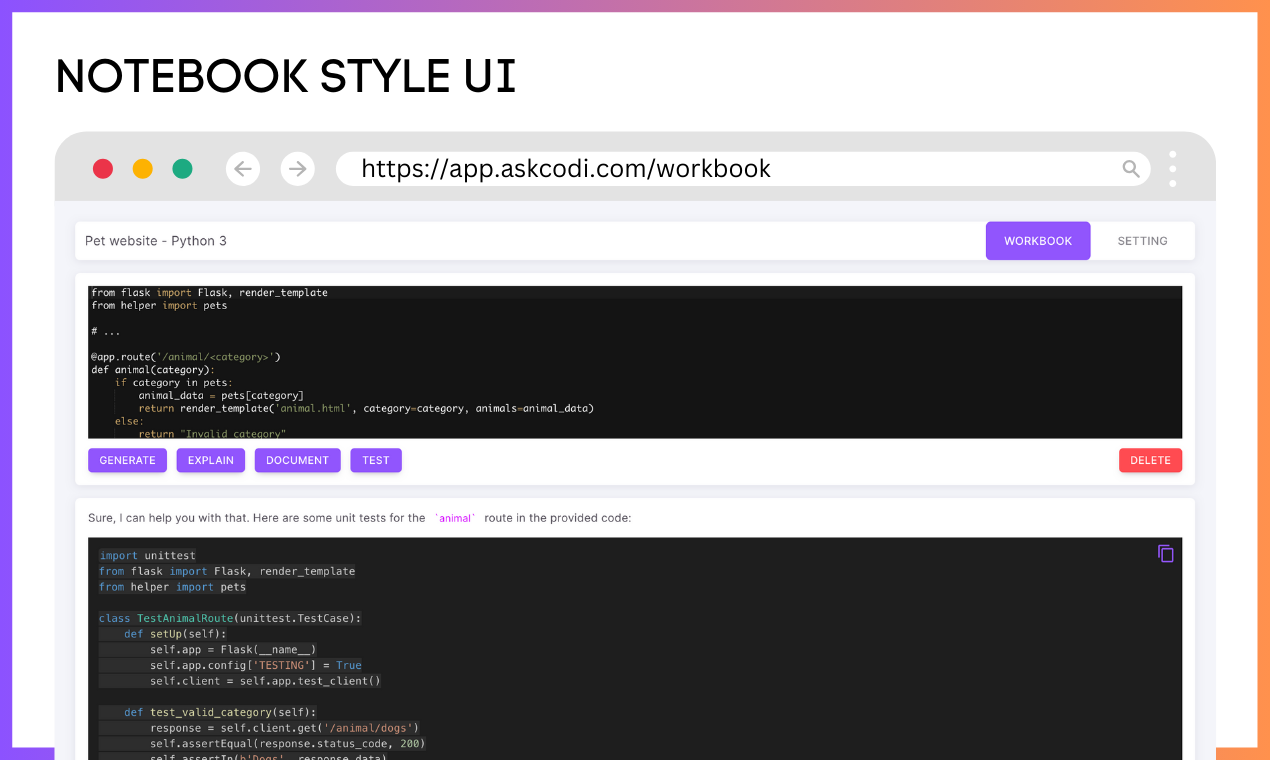 - Libérez tout le potentiel du codage avec l’IA. AskCodi, votre compagnon de codage de confiance, vous place au centre de l’excellence en matière de codage. AskCodi vous permet de coder mieux et plus rapidement grâce à des workbooks interactifs, un support par chat en temps réel, des extensions IDE polyvalentes, et un support pour plus de 50 langages.