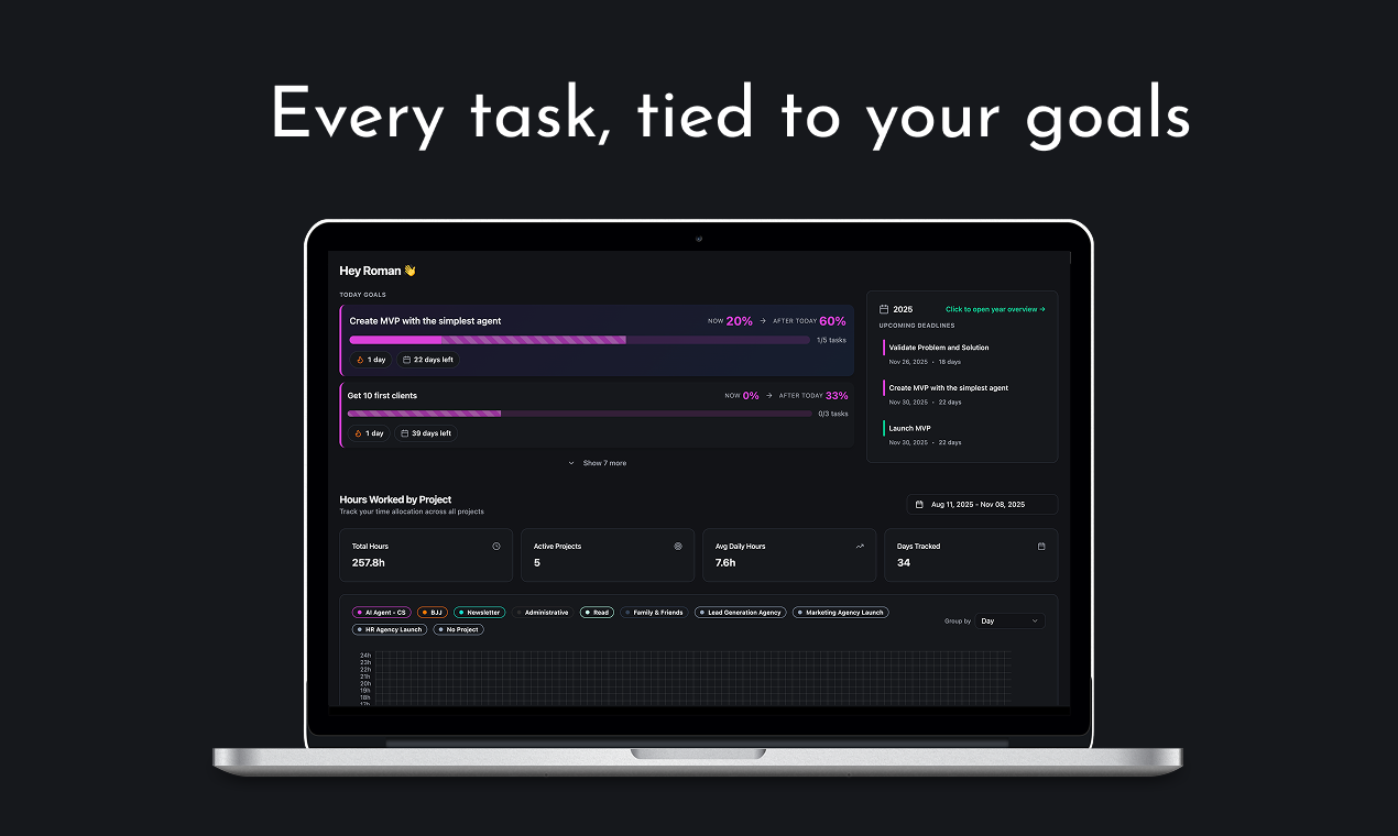 Astrolid est un outil de gestion de projet qui aide les créateurs, les fondateurs et les makers à atteindre leurs objectifs plus rapidement en liant chaque tâche à un but, et en aidant les utilisateurs à ressentir l’élan et le progrès à chaque étape. Il montre combien chaque tâche contribue à votre progression, débloquant des opportunités de productivité et réduisant le travail inutile. La plupart des outils de gestion de projet sont inefficaces, découvrez pourquoi Astrolid ne l’est pas !