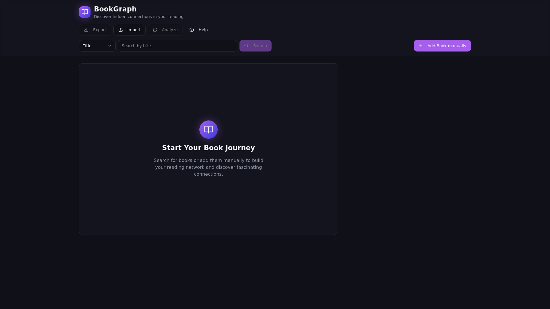 BookGraph est un outil qui vous permet de visualiser votre réseau de lecture. Découvrez des patterns et des connexions cachés dans votre parcours de lecture à travers un visualiseur interactif de relations entre livres.