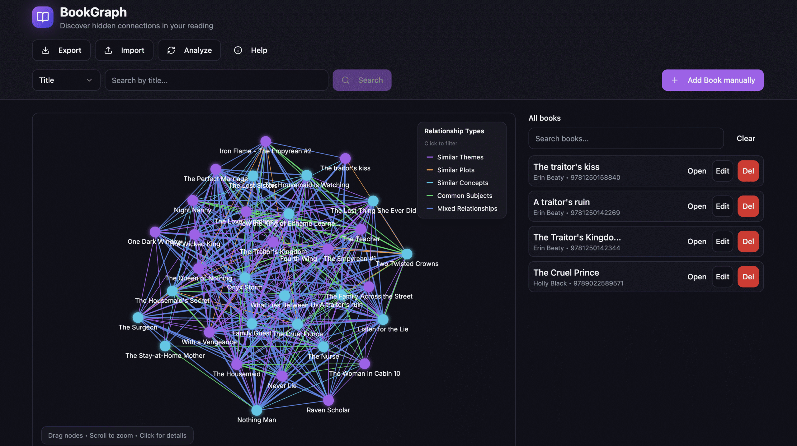 - Interactive book relationship visualizer