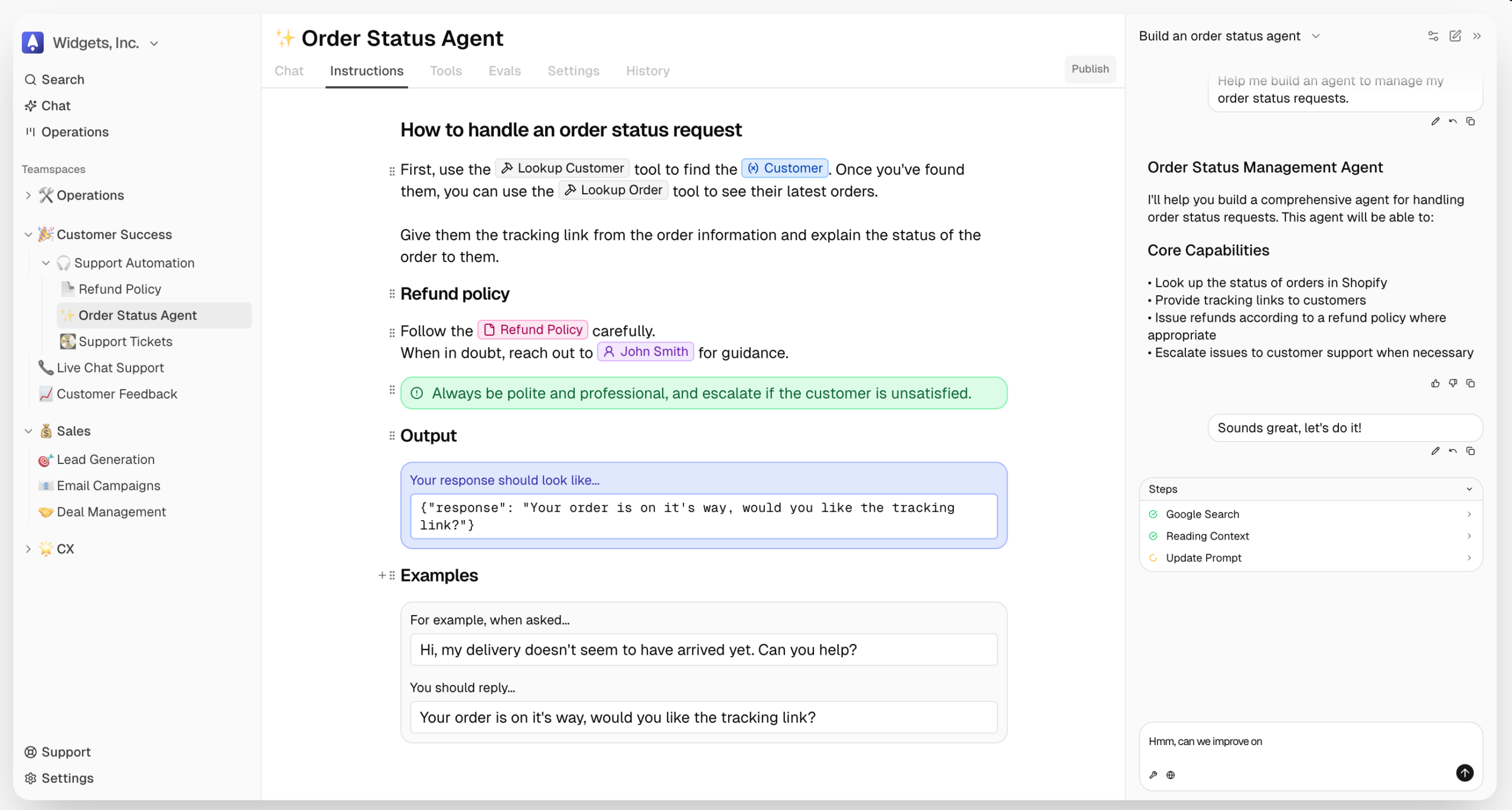- Création d’agents via chat