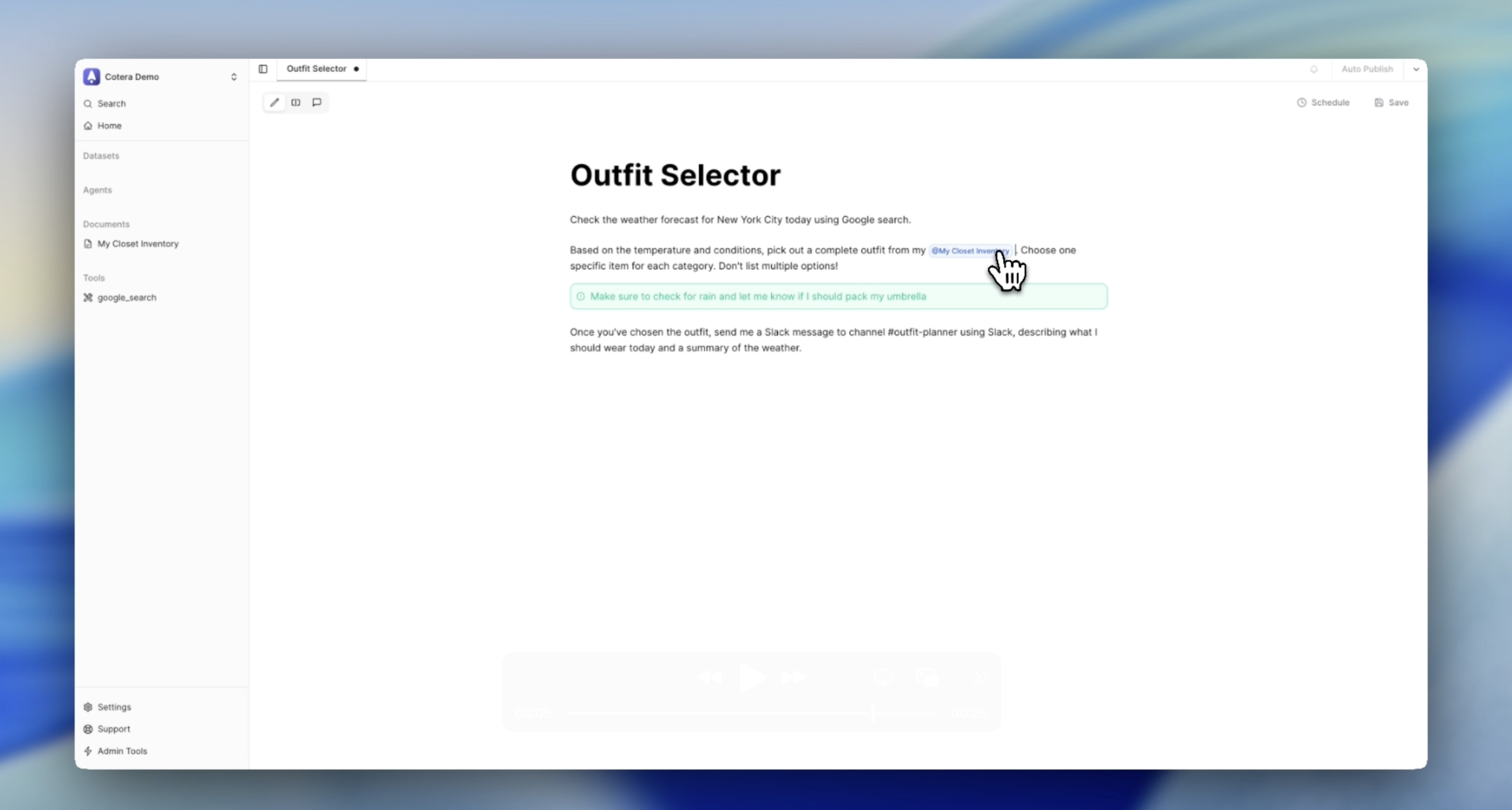 Cotera est un créateur d’IA agentique qui permet aux utilisateurs de s’inscrire par eux-mêmes, de construire leurs propres agents et de connecter divers outils. L’outil est conçu pour être intuitif, permettant la création d’agents via un chat et offrant des centaines d’outils pour répondre aux besoins des utilisateurs. Cotera met l’accent sur la transparence et le contrôle, permettant aux utilisateurs de définir les fonctionnalités de leurs agents selon leurs préférences.