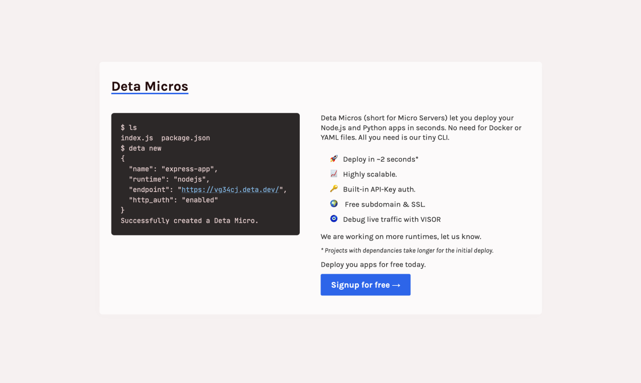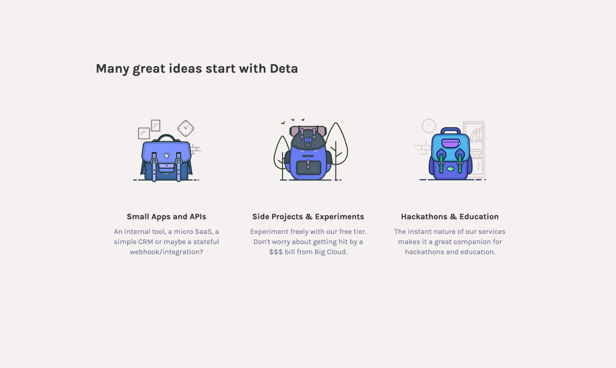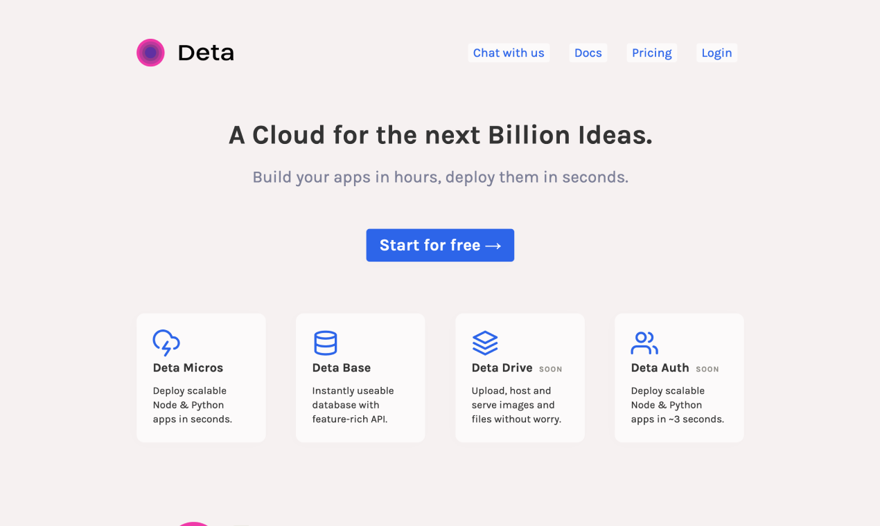 • Deta est en train de construire un cloud pour les développeurs, avec moins de « cloches et de sifflets », uniquement ce qui est nécessaire pour accomplir le travail.