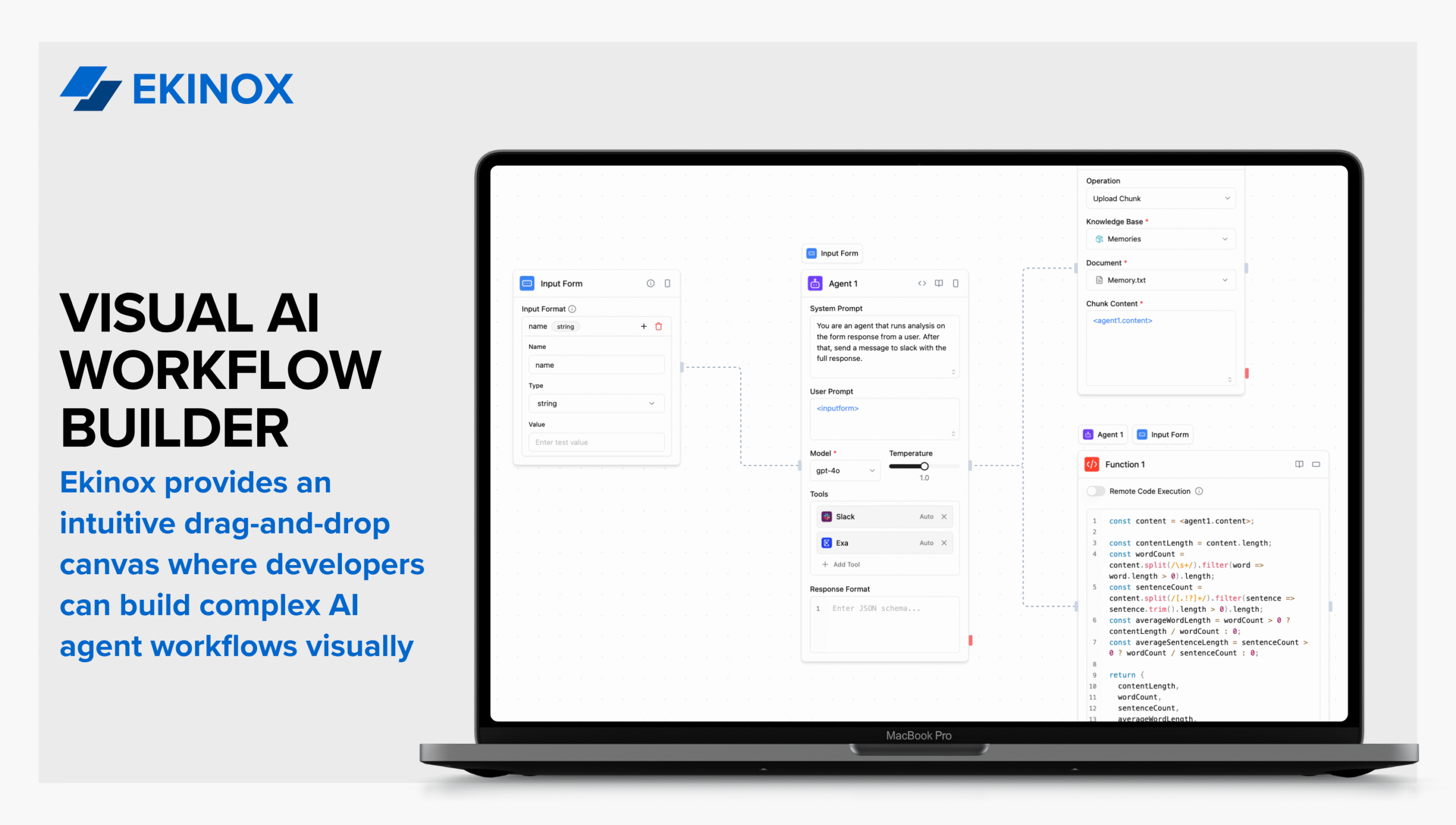 - Ekinox est un constructeur de workflows AI visuels qui permet de créer des workflows puissants sans codage grâce à sa plateforme intuitive de glisser-déposer.