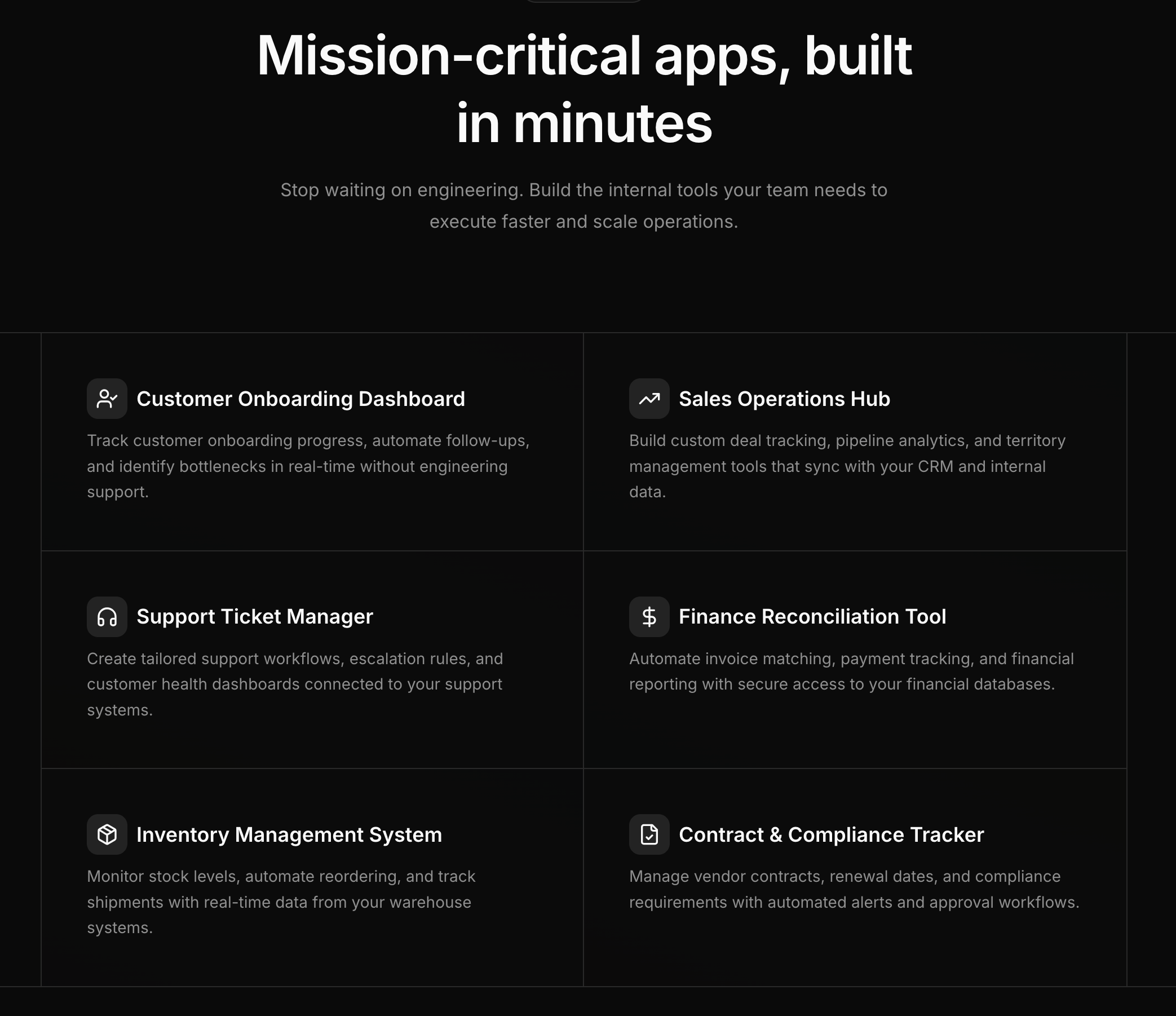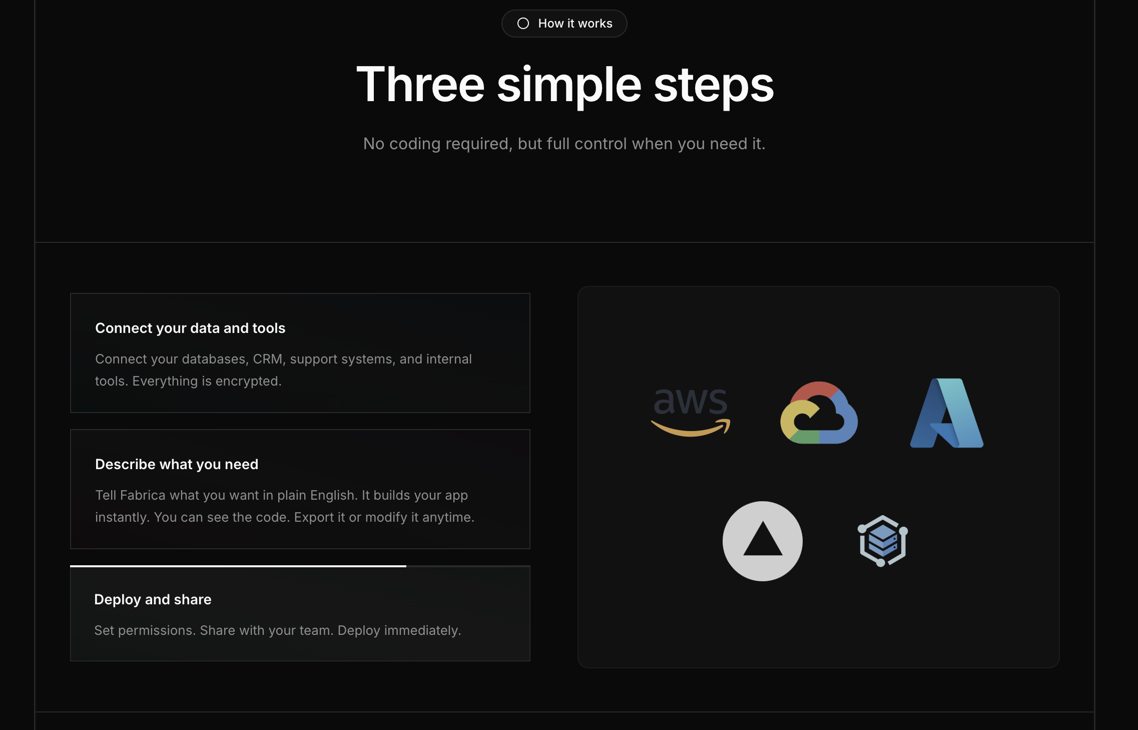 - Fabrica est un outil conçu pour la création d’applications internes et de tableaux de bord, permettant aux utilisateurs de se connecter à leurs bases de données internes et outils. Grâce à une interface intuitive, les utilisateurs peuvent construire divers types de logiciels internes simplement en interagissant avec une IA, facilitant ainsi le développement rapide et efficace.