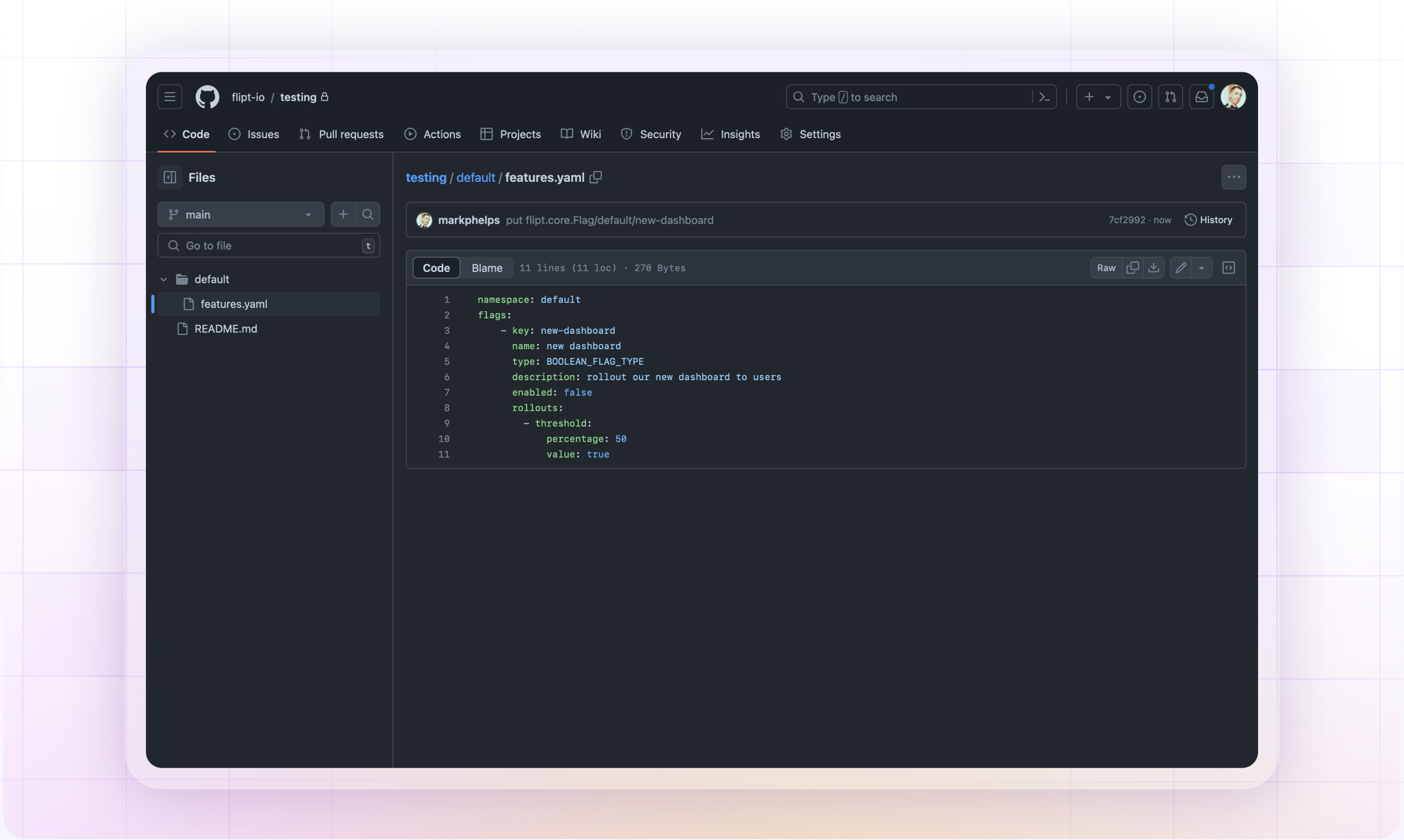 Flipt v2 / Feature Flags. Powered by Git/Flipt Cloud simplifie la gestion des fonctionnalités, stockant toutes les configurations de drapeau dans vos dépôts GitHub afin que vous contrôliez toujours vos données. Déployez, testez et annulez les fonctionnalités en toute simplicité, en traitant les drapeaux de fonctionnalités comme du code pour des mises en production sans heurts et une itération plus rapide.