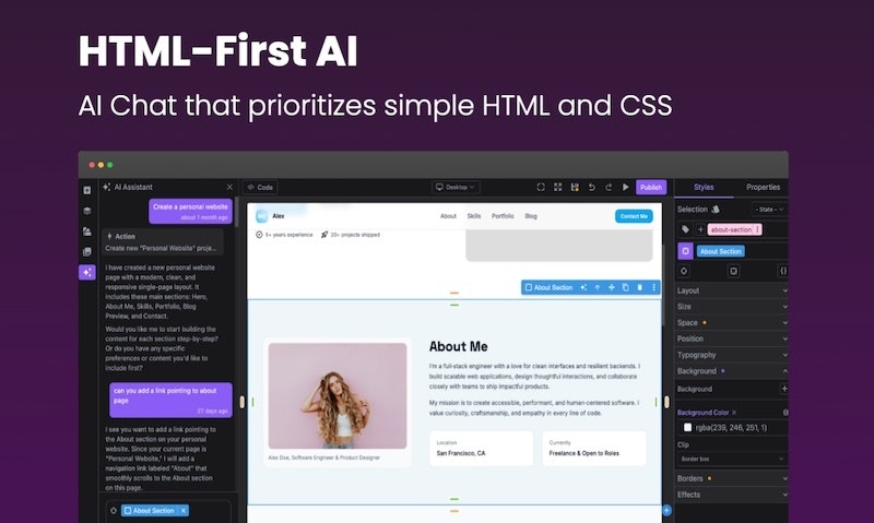 Grapes Studio est un constructeur de sites Web et d’emails, propulsé par l’IA, qui privilégie le HTML et offre une interface de glisser-déposer. Permettez à l’IA de générer des sites, modifiez-les visuellement ou dans le code, et publiez instantanément. Grapes Studio ne présente pas de surcharge de React, garantissant ainsi un HTML statique propre et un contrôle complet sur vos projets.
