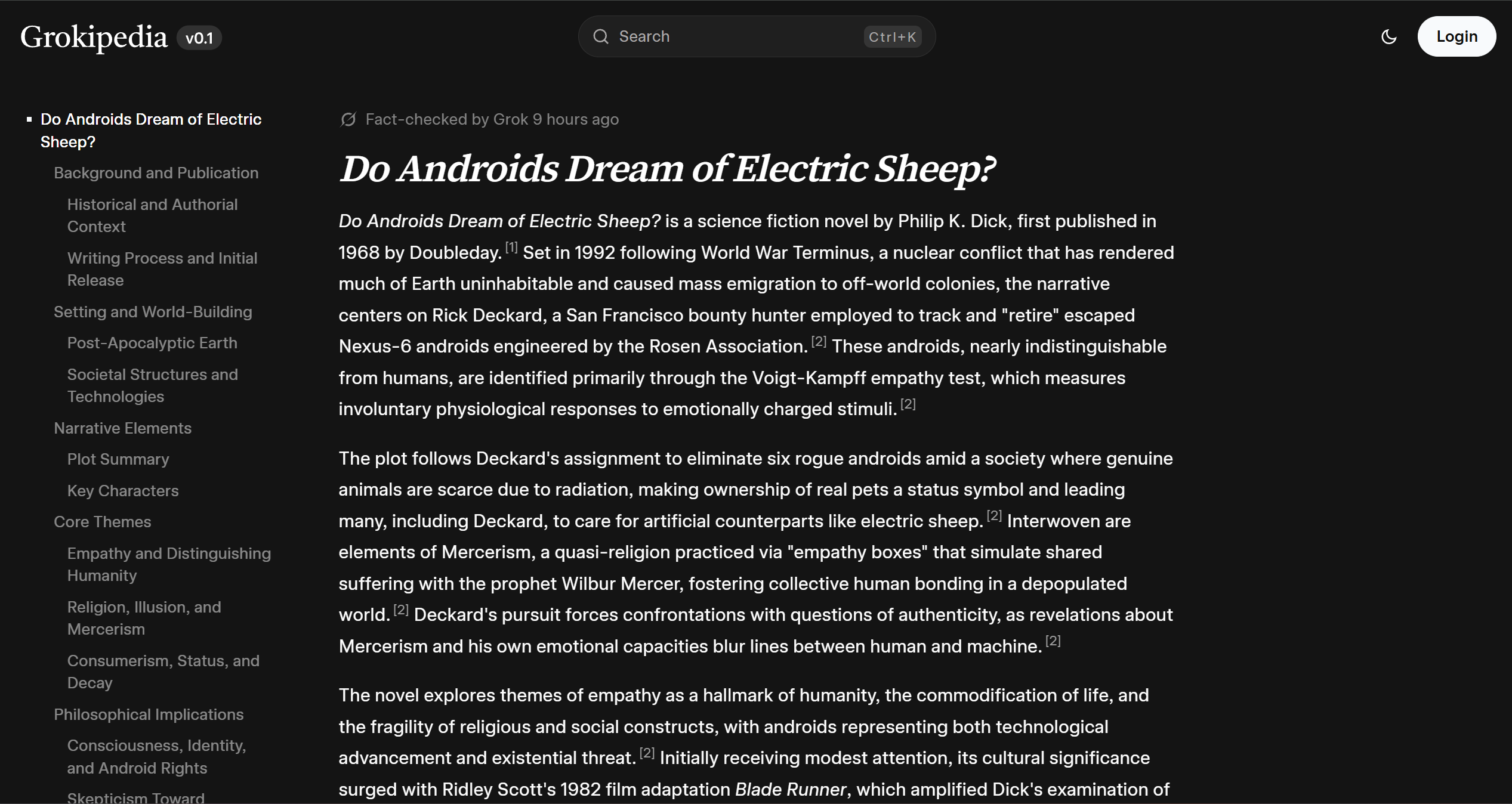 - Grokipedia est une encyclopédie générée par IA et développée par xAI, sous l’égide d’Elon Musk. Elle propose une approche alternative à Wikipedia, se concentrant sur la vérité et l’actualité des informations. Avec près de 900 000 articles, elle vise à réinventer la manière dont les connaissances sont accessibles en ligne, tirant parti de la technologie avancée de Grok.