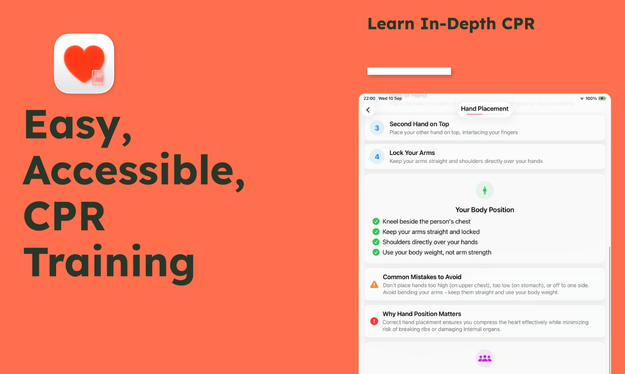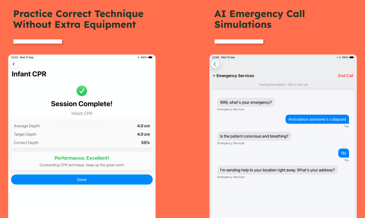 • Heartbeat Hero permet à quiconque d’apprendre rapidement la RCP, suivi d’une pratique jusqu’à maîtrise. L’application fournit un retour d’information précis et en temps réel sur le rythme et la profondeur, assurant des compressions thoraciques efficaces. Toutes les leçons fonctionnent hors ligne, et un simulateur d’appel d’urgence Ai 999 aide à préparer ce que dire en cas d’urgence. L’application s’ouvre toujours avec what3words et la localisation en direct pour les situations réelles d’urgence.