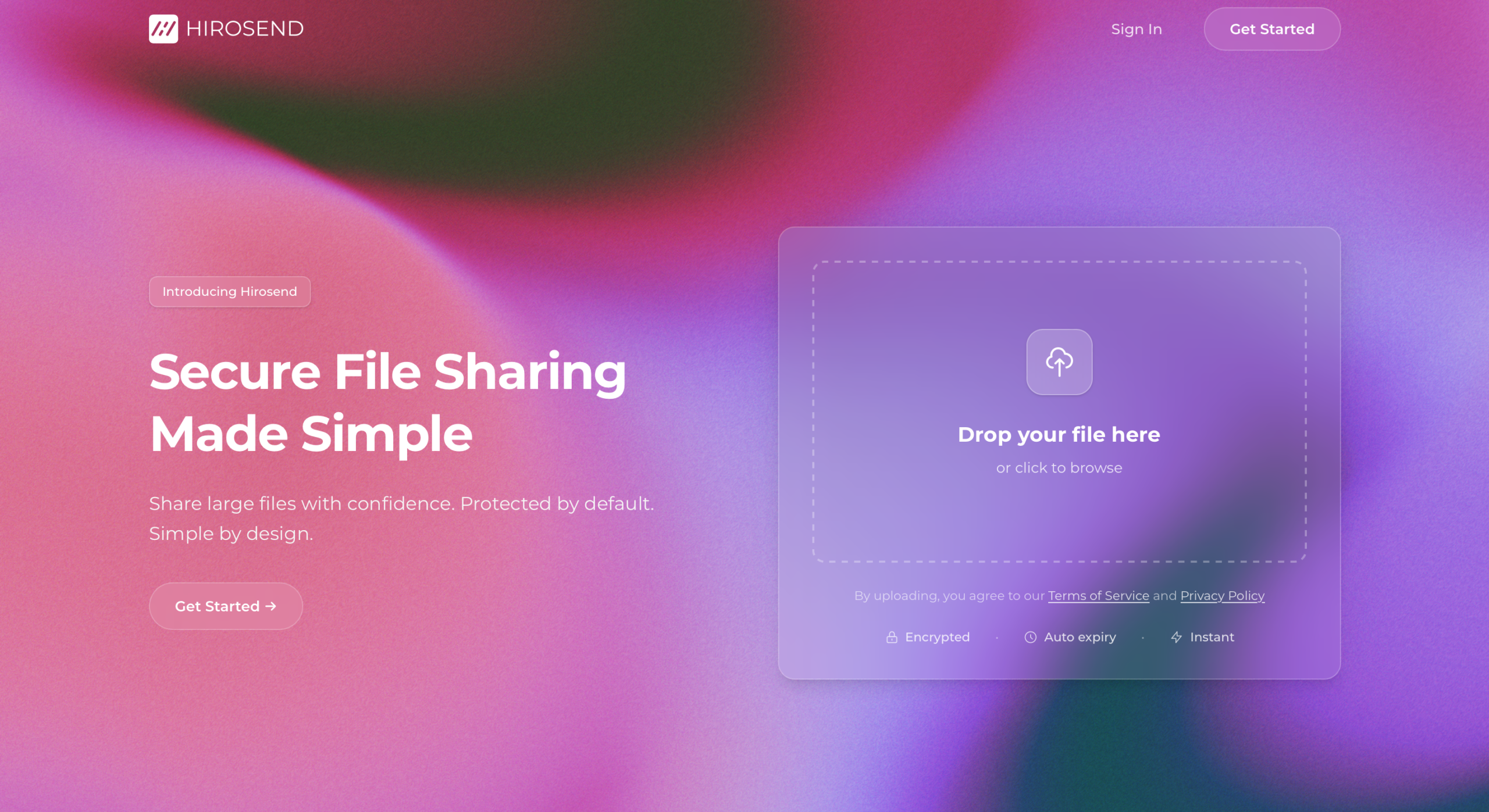 - Hirosend simplifie le partage de fichiers en éliminant le désordre des outils traditionnels. L’outil offre une expérience sécurisée sans configuration complexe. Les fichiers sont chiffrés dès le moment où vous les téléchargez, avec une gestion automatique des liens d’accès et une expiration des fichiers pour garantir leur sécurité. Idéal pour les utilisateurs recherchant un partage de fichiers rapide et sécurisé.