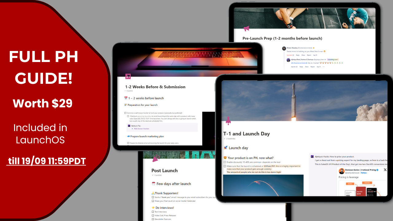 - LaunchOS permet d’aligner les objectifs (OKRs), de planifier des lancements et des feuilles de route produit dans Notion. Cet outil vise à rendre le processus de lancement plus engageant en fournissant un guide structuré basé sur Notion. Il aide les équipes à s’aligner efficacement grâce à l’utilisation du cadre OKR et permet d’exécuter les lancements en utilisant des SOP pour les lancements web, les communiqués de presse et plus encore.