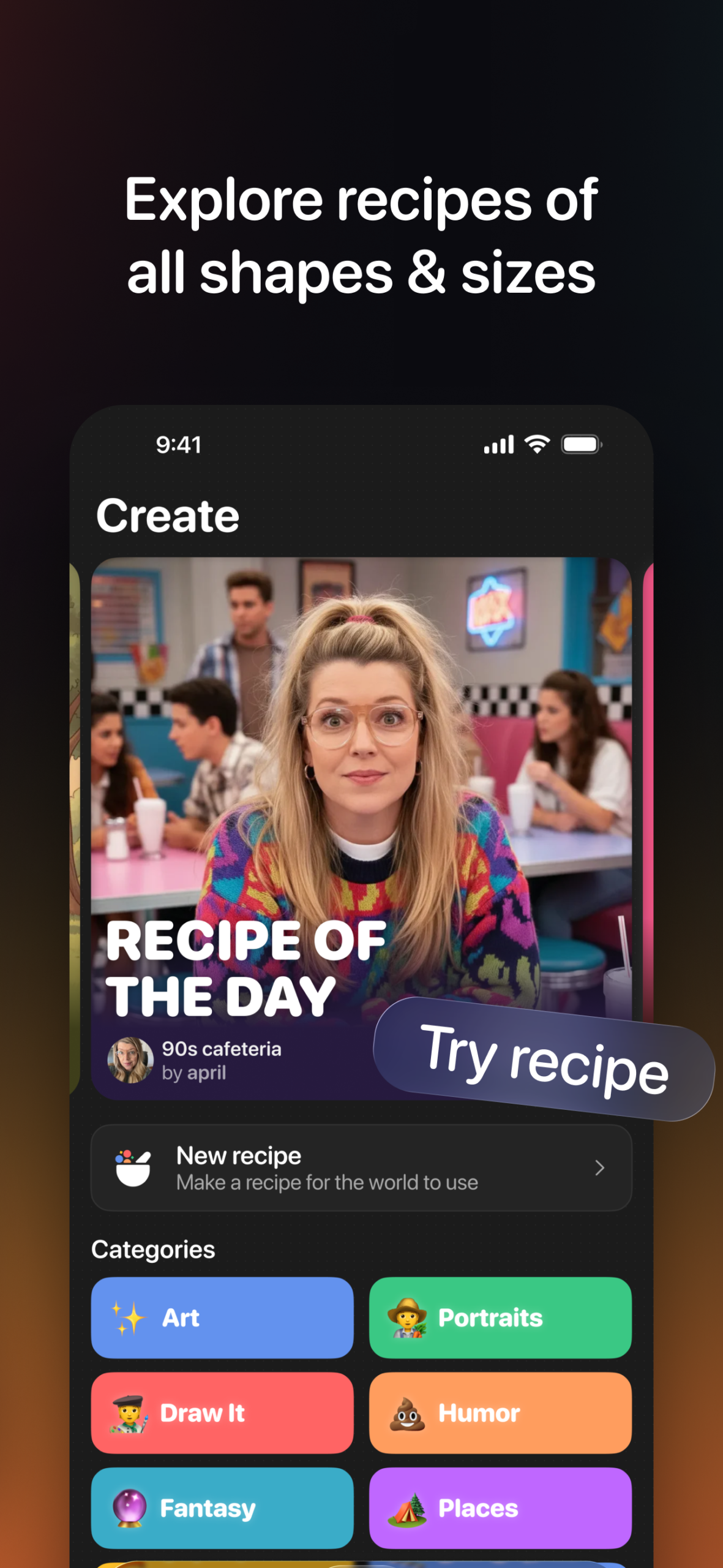 Mixup est un outil magique de création photo qui permet aux utilisateurs de produire des images étranges et merveilleuses grâce à des recettes – des prompts écrits par des humains comportant des espaces pour des photos, textes et croquis. Parcourez le contenu créé par d’autres et remplacez les éléments par les vôtres, ou imaginez une nouvelle recette pour que d’autres puissent en profiter. Certaines créations sont magnifiques, d’autres bizarres, toutes exclusivement humaines. Mixup utilise les dernières avancées en matière d’IA générative, mais c’est la créativité humaine qui fait briller l’outil.