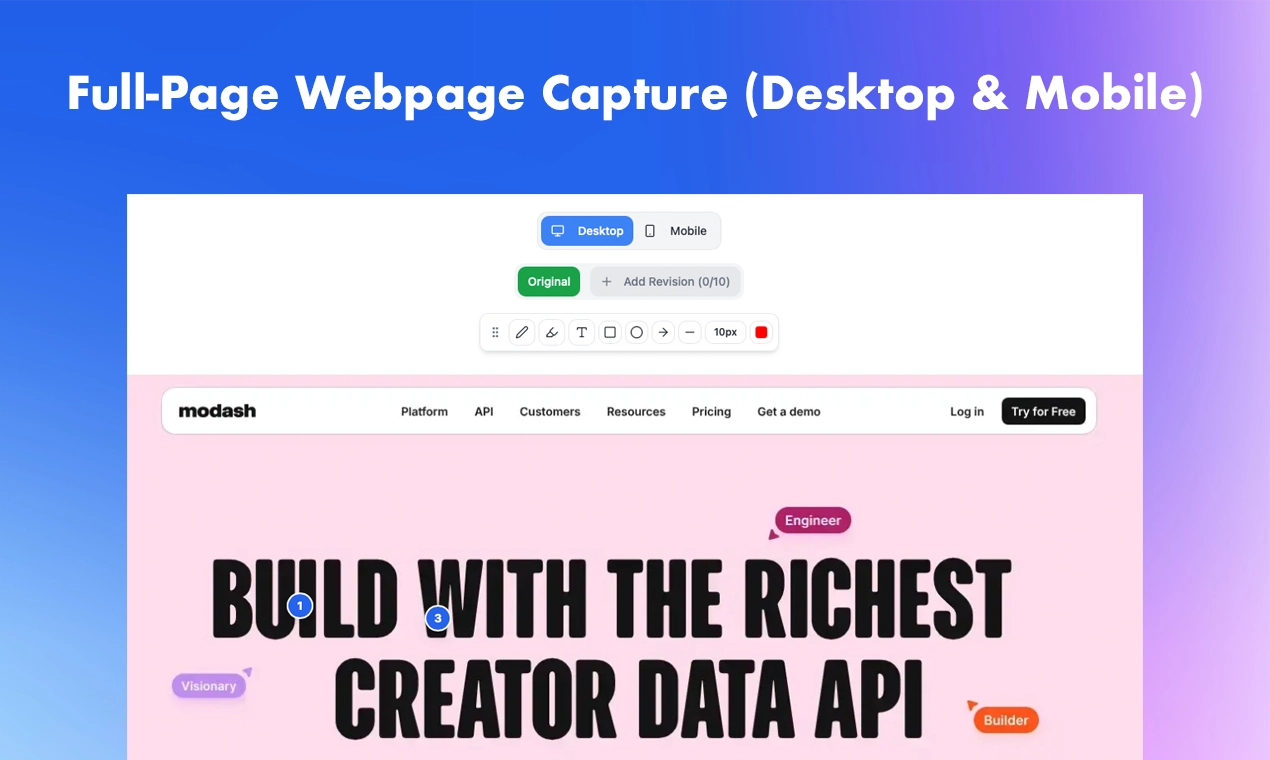 Loomoz est un outil moderne d’édition visuelle qui aide les équipes à travailler plus rapidement et à communiquer clairement. Il permet de capturer des pages web complètes sur ordinateur et mobile, d’ajouter des annotations en fil de discussion avec des flèches, des surlignages, des formes, du texte et des commentaires, et de collaborer en direct ou de manière asynchrone. Les utilisateurs peuvent inviter des coéquipiers dans des espaces de travail partagés, assigner des rôles, suivre les révisions, organiser des projets et connecter Loomoz à Slack, Asana et Trello pour des cycles de feedback plus fluides et efficaces.