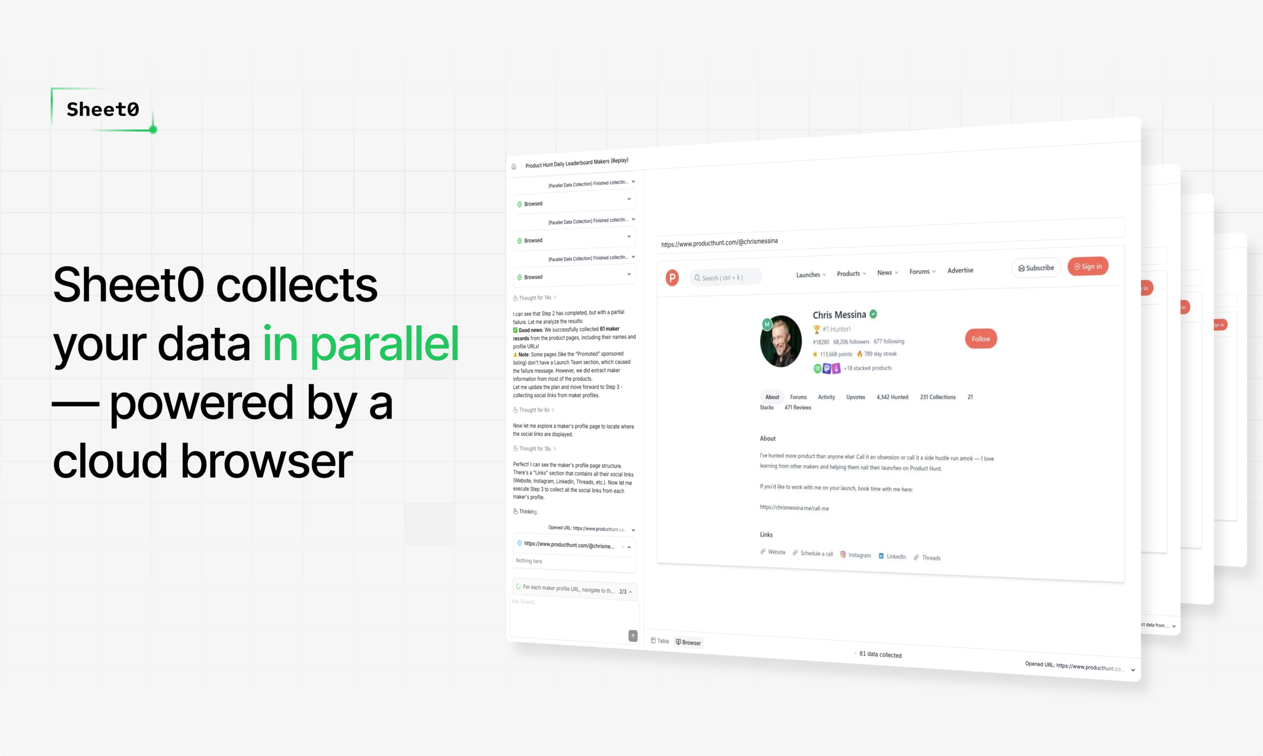 - Son navigateur cloud récupère des données en parallèle, les nettoie et crée une feuille de calcul interactive et ordonnée.