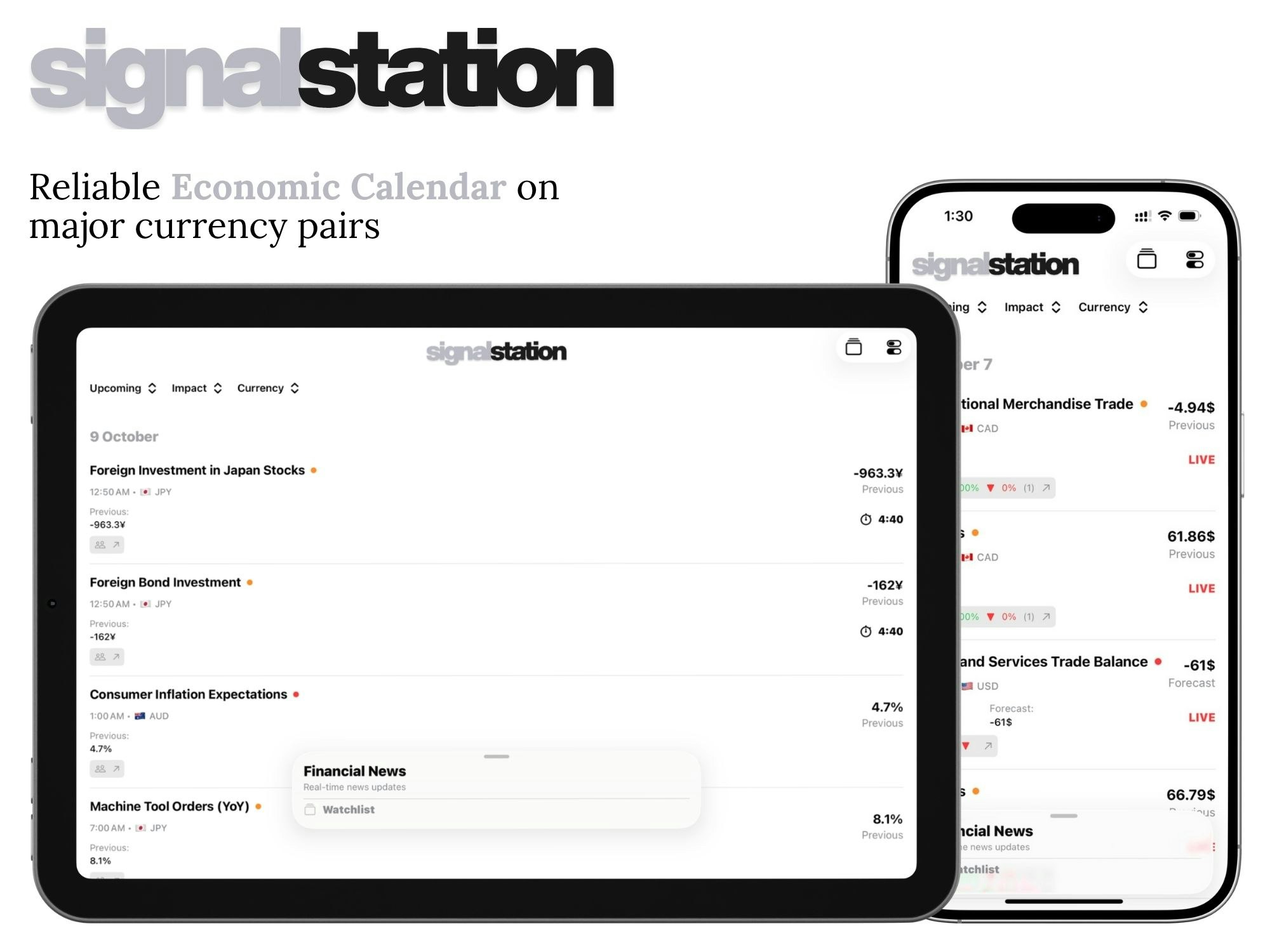 - Signal Station est un calendrier économique innovant qui permet aux traders de ne jamais rater des événements importants du marché. Il met en avant les publications économiques sur votre écran de verrouillage avec des activités en direct, un suivi du sentiment communautaire et des alertes intelligentes.