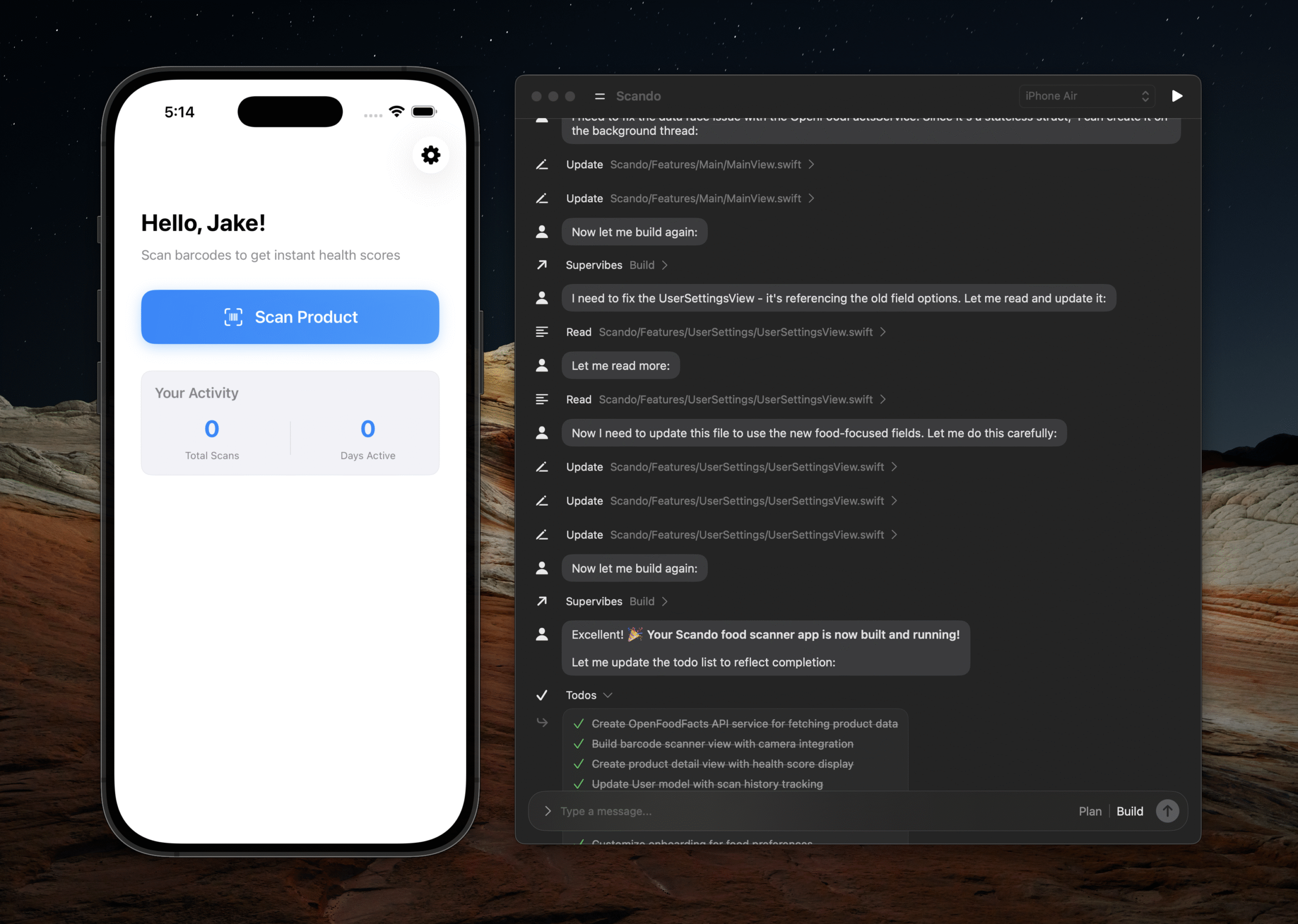 Supervibes est l’outil de vibecoding idéal pour le développement d’applications iOS. Conçu spécifiquement pour Swift, il permet de créer, exécuter et expédier de vraies applications, que vous ayez ou non Xcode. Que vous commenciez de zéro ou que vous importiez un projet existant, Supervibes optimise votre processus de développement pour maximiser les revenus.