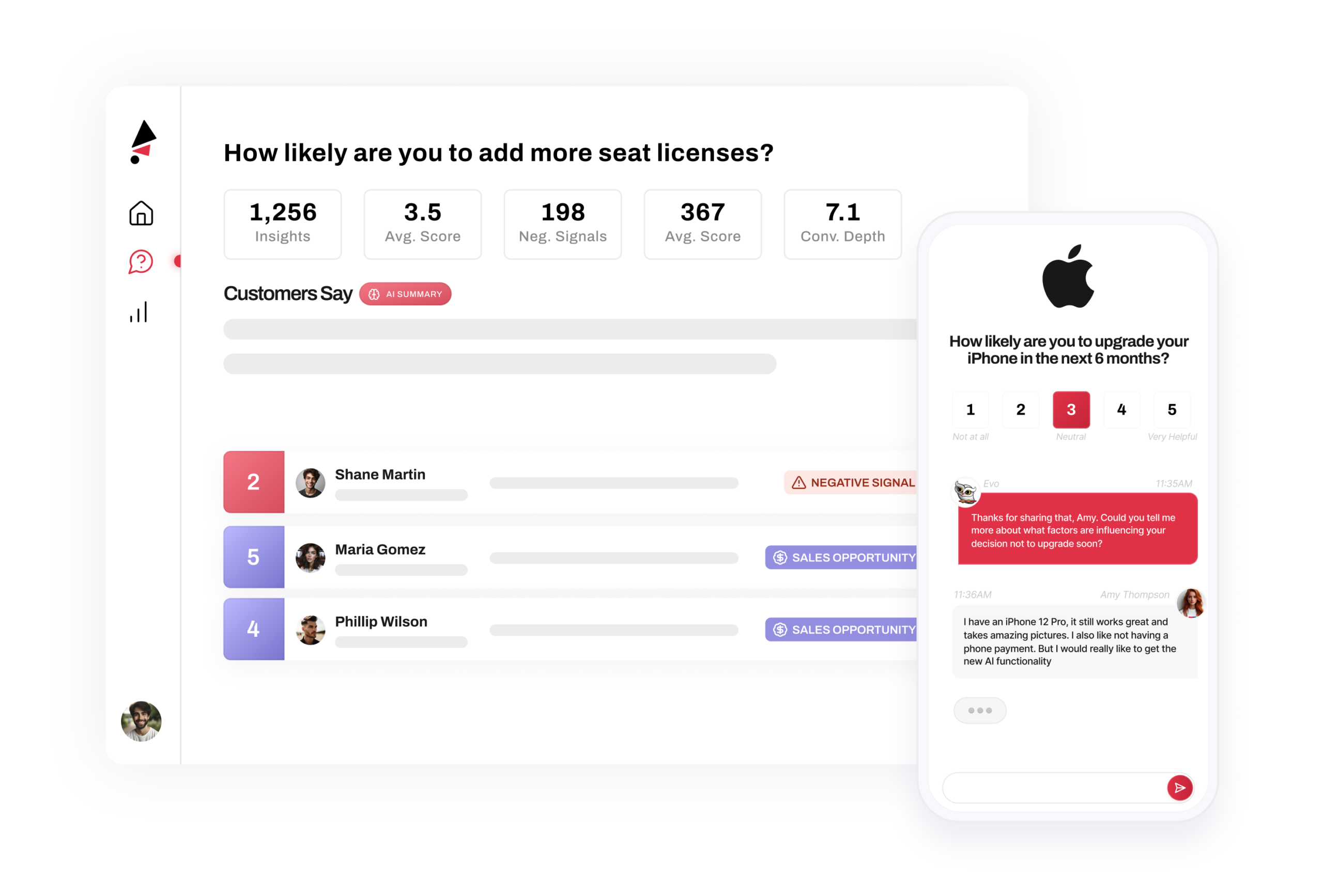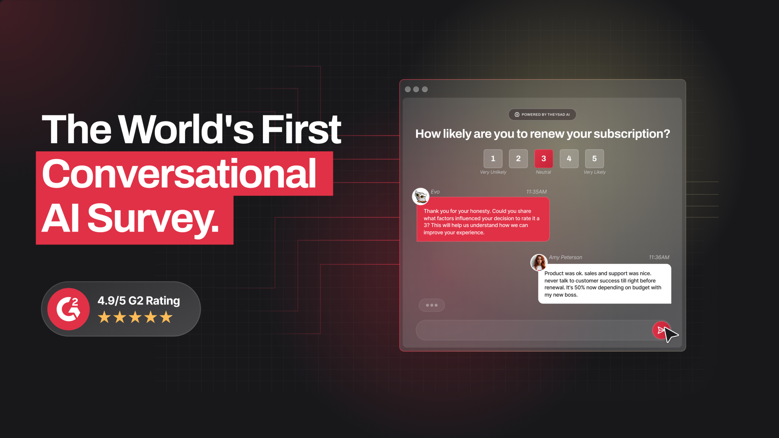 TheySaid est plus qu’un simple sondage – c’est une opportunité d’engager vos clients, employés, membres, etc. La formation de l’IA prend moins d’une minute en la dirigeant vers votre URL ou un document interne. Votre public peut répondre et poser des questions comme s’il s’adressait à vous!