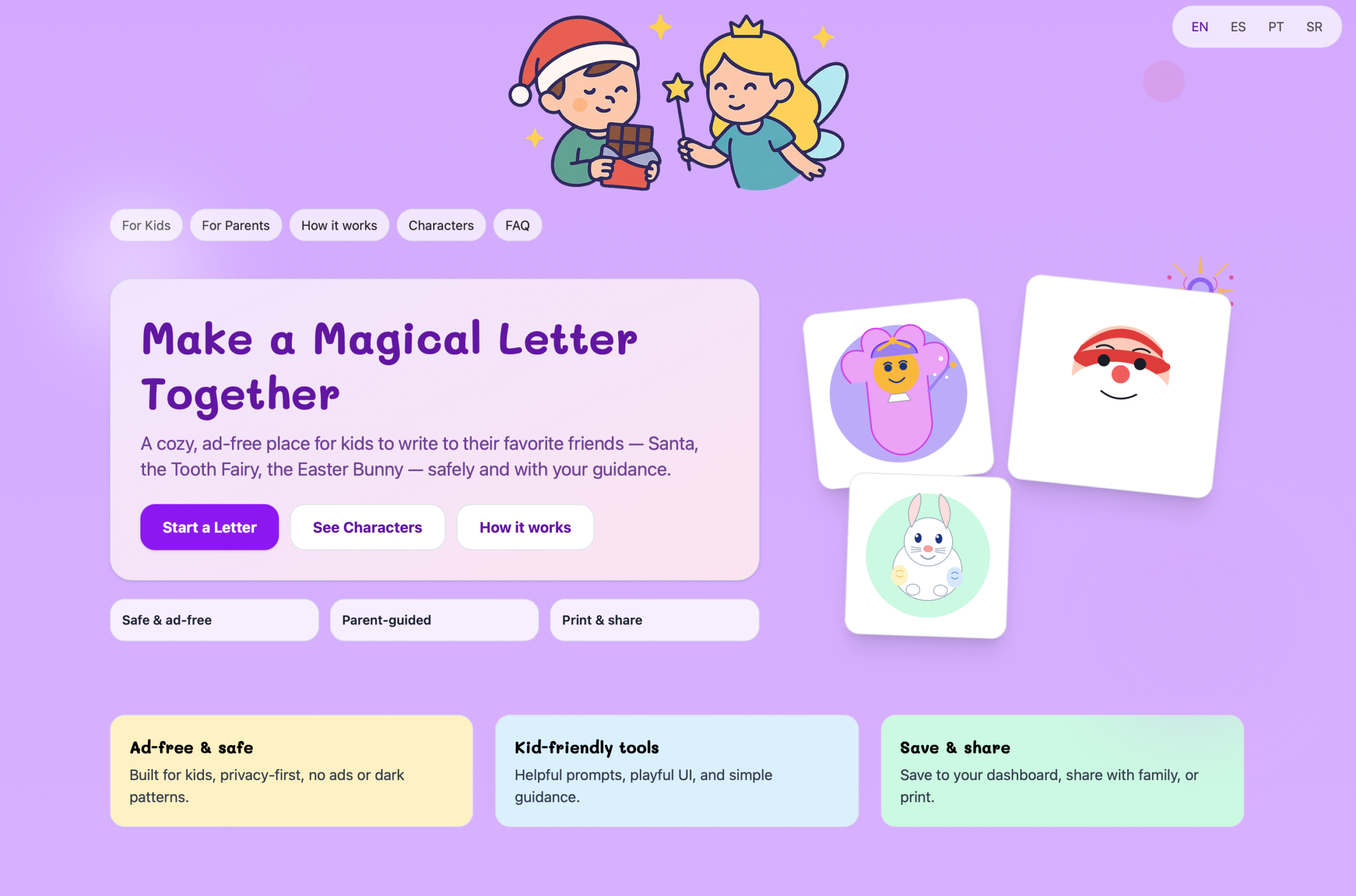 WishfulMail permet aux enfants d’écrire des lettres magiques à Santa, à la Petite Souris et à d’autres, tout en offrant aux parents la possibilité de recevoir secrètement ces messages. Cela maintient la magie de l’enfance dans un espace privé, conforme au COPPA et sans publicité, conçu pour les familles.
