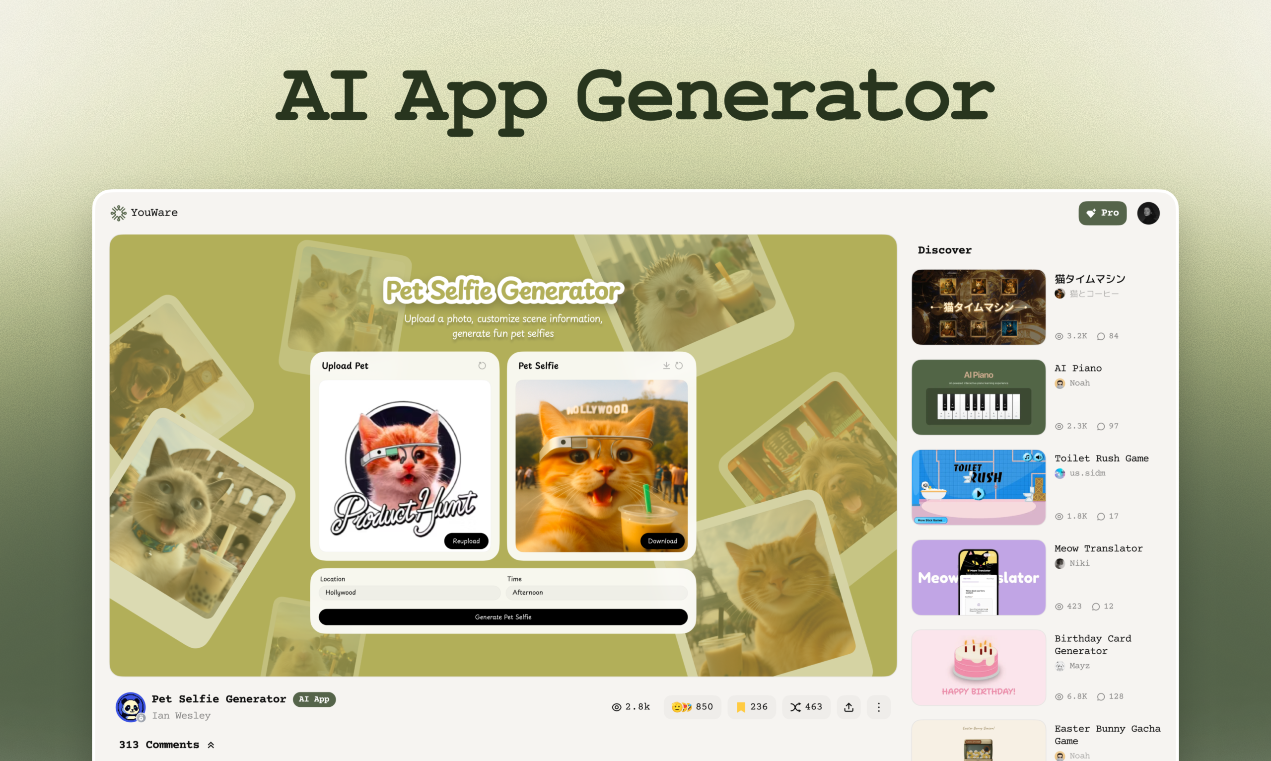 YouWare est la première communauté de codage dynamique, qui regroupe des outils puissants basés sur l’IA, permettant aux utilisateurs de construire, partager et s’inspirer. Rejoignez plus de 100K créateurs et explorez 300K+ projets pour obtenir des idées et des retours sur vos créations.